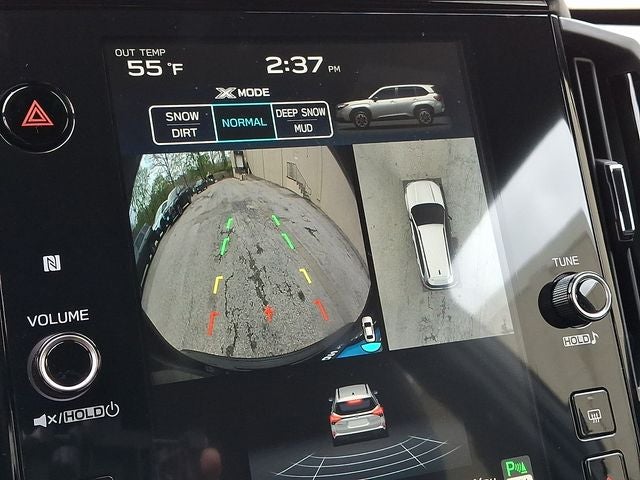 This Forester Touring is nicely equipped with Standard Model, 11 Speakers, 4-Wheel Disc Brakes, ABS brakes, Air Conditioning, All-Weather Floor Liners, Alloy wheels, AM/FM radio: SiriusXM with 360L, Anti-whiplash front head restraints, Auto High-beam Headlights, Automatic temperature control, Brake assist, Bumpers: body-color, Cargo Tray, Compass, Driver door bin, Driver vanity mirror, Dual front impact airbags, Dual front side impact airbags, Electronic Stability Control, Emergency communication system: MySubaru Companion (5-years free), Exterior Parking Camera Rear, Four wheel independent suspension, Front anti-roll bar, Front Bucket Seats, Front Center Armrest, Front dual zone A/C, Front fog lights, Front reading lights, Fully automatic headlights, harman/kardon® Speakers, Heated and Ventilated Front Bucket Seats, Heated door mirrors, Heated front seats, Heated rear seats, Heated steering wheel, HVAC memory, Illuminated entry, Knee airbag, Low tire pressure warning, Memory seat, Navigation System, Occupant sensing airbag, Outside temperature display, Overhead airbag, Overhead console, Panic alarm, Passenger door bin, Passenger vanity mirror, Perforated Leather-Trimmed Upholstery, Power door mirrors, Power driver seat, Power Liftgate, Power moonroof: Panoramic, Power passenger seat, Power steering, Power windows, Radio data system, Radio: Subaru 11.6 Multimedia Navigation System, Rear anti-roll bar, Rear Bumper Cover, Rear seat center armrest, Rear Seatback Protector, Rear window defroster, Rear window wiper, Remote keyless entry, Security system, Speed control, Speed-sensing steering, Split folding rear seat, Spoiler, Steering wheel mounted audio controls, Tachometer, Telescoping steering wheel, Tilt steering wheel, Traction control, Trip computer, Turn signal indicator mirrors, Variably intermittent wipers, Ventilated front seats, and Wheels: 19 x 7.5 J Dark Gray Aluminum-Alloy.