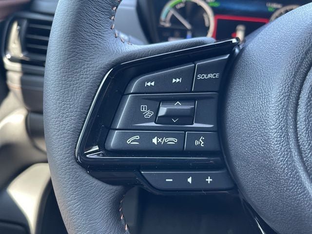 This Forester Hybrid Touring is nicely equipped with Standard Model, Touring Package (All-Weather Floor Liners, Body Side Molding - Crystal White Pearl, LED Upgrade, Rear Bumper Cover, and Splash Guards), 2.5L 4-Cylinder DOHC 16V, 11 Speakers, 4-Wheel Disc Brakes, ABS brakes, Air Conditioning, Alloy wheels, AM/FM radio: SiriusXM with 360L, Anti-whiplash front head restraints, Auto High-beam Headlights, Automatic temperature control, Brake assist, Bumpers: body-color, Compass, Driver door bin, Driver vanity mirror, Dual front impact airbags, Dual front side impact airbags, Electronic Stability Control, Exterior Parking Camera Rear, Four wheel independent suspension, Front anti-roll bar, Front Bucket Seats, Front Center Armrest, Front dual zone A/C, Front fog lights, Front reading lights, Fully automatic headlights, harman/kardon® Speakers, Heated door mirrors, Heated front seats, Heated rear seats, Heated steering wheel, HVAC memory, Illuminated entry, Knee airbag, Low tire pressure warning, Memory seat, Navigation system: TomTom Navigation w/what3words, Occupant sensing airbag, Outside temperature display, Overhead airbag, Overhead console, Panic alarm, Passenger door bin, Passenger vanity mirror, Perforated Leather-Trimmed Upholstery, Power door mirrors, Power driver seat, Power Liftgate, Power moonroof: Panoramic, Power passenger seat, Power steering, Power windows, Radio data system, Rear anti-roll bar, Rear seat center armrest, Rear window defroster, Rear window wiper, Remote keyless entry, Security system, Speed control, Speed-sensing steering, Split folding rear seat, Spoiler, Steering wheel mounted audio controls, Tachometer, Telescoping steering wheel, Tilt steering wheel, Traction control, Trip computer, Turn signal indicator mirrors, Variably intermittent wipers, Ventilated front seats, and Wheels: 19 x 7.5 J Dark Gray Aluminum-Alloy.