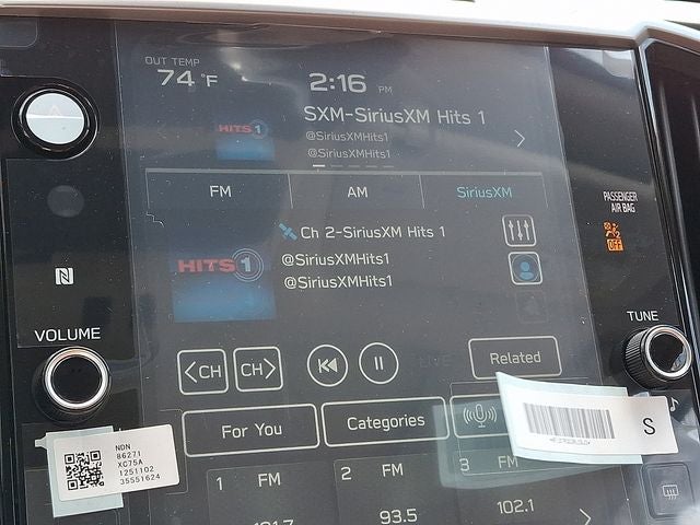 - Radio: Subaru 11.6" Multimedia System w/Navigation -inc: AM/FM stereo HD Radio, multi-touch gesture high resolution display screen, voice activated controls for radio and navigation, Bluetooth® audio streaming and hands-free phone connectivity w/SMS text messaging connectivity (refer to subaru.com for cell phone compatibility), TomTom navigation software w/what3words, iPod control capability, smartphone integration for Android Auto and Apple CarPlay w/full screen view and wireless connection, USB audio system update, audio system control switches, hands-free phone switches and voice command talk switch on steering wheel, harman/kardon quantum logic surround sound speaker system w/14 speakers, subwoofer and harman/kardon 792 watt equivalent maximum output amplifier, illuminated 3.5mm auxiliary input jack, illuminated USB A and C input/charge ports, SiriusXM w/360L (4 months free trial included/subscription required after) and SiriusXM Travel Link (4 months free trial included/subscription required after)
