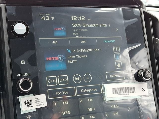 - Radio: Subaru 11.6" Multimedia Plus System -inc: AM/FM stereo, HD Radio, multi-touch gesture high resolution display screen, voice activated controls, Bluetooth® audio streaming and hands-free phone connectivity, Bluetooth® hands-free SMS text messaging connectivity, iPod control capability, smartphone integration: wired and wireless Android Auto w/full screen view and wireless Apple CarPlay w/full screen view, USB and Over The Air (OTA) audio system update, steering wheel audio system and Bluetooth® control switches, 6 speakers (2 dash panel tweeter, 2 front door and 2 rear door), illuminated 3.5mm auxiliary input jack, illuminated front USB A and C input/charge ports, connected services operation indicator, SOS emergency assistance: red SOS button and enhanced roadside assistance: blue i-button