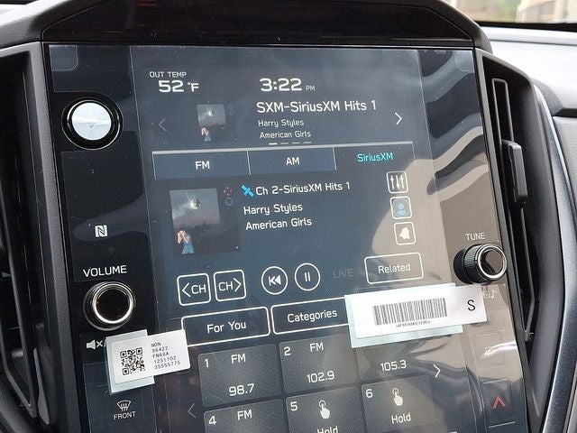 - Radio: Subaru 11.6" Multimedia Plus System -inc: AM/FM stereo, HD Radio, multi-touch gesture high resolution display screen, voice activated controls, Bluetooth® audio streaming and hands-free phone connectivity, Bluetooth® hands-free SMS text messaging connectivity, iPod control capability, smartphone integration: wired and wireless Android Auto w/full screen view and wireless Apple CarPlay w/full screen view, USB and Over The Air (OTA) audio system update, steering wheel audio system and Bluetooth® control switches, 6 speakers (2 dash panel tweeter, 2 front door and 2 rear door), illuminated 3.5mm auxiliary input jack, illuminated front USB A and C input/charge ports, connected services operation indicator, SOS emergency assistance: red SOS button and enhanced roadside assistance: blue i-button