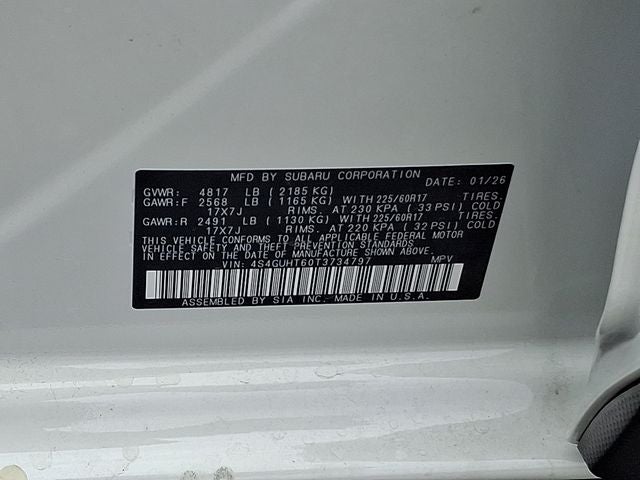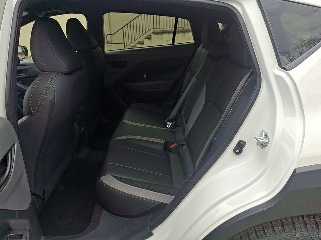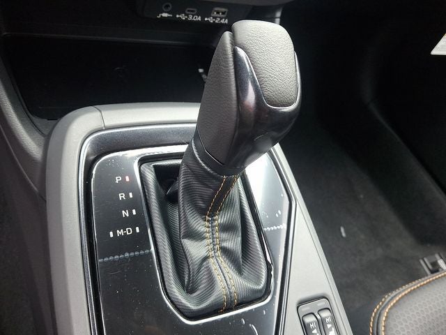 This Crosstrek Wilderness is nicely equipped with Standard Model, 4-Wheel Disc Brakes, 6 Speakers, ABS brakes, Air Conditioning, Alloy wheels, AM/FM radio: SiriusXM with 360L, Anti-whiplash front head restraints, Auto High-beam Headlights, Auto-Dimming Mirror with Compass and HomeLink, Automatic temperature control, Brake assist, Bumpers: body-color, Driver door bin, Driver vanity mirror, Dual front impact airbags, Dual front side impact airbags, Electronic Stability Control, Emergency communication system: MySubaru Companion (5-years free), Exterior Parking Camera Rear, Four wheel independent suspension, Front anti-roll bar, Front Bucket Seats, Front Center Armrest, Front dual zone A/C, Front fog lights, Front reading lights, Fully automatic headlights, Heated door mirrors, Heated Front Bucket Seats, Heated front seats, Heated steering wheel, Illuminated entry, Knee airbag, Leather Shift Knob, Leather steering wheel, Low tire pressure warning, Occupant sensing airbag, Outside temperature display, Overhead airbag, Overhead console, Panic alarm, Passenger door bin, Passenger vanity mirror, Power door mirrors, Power steering, Power windows, Radio data system, Radio: Subaru 11.6 Multimedia Plus System, Rear anti-roll bar, Rear Bumper Cover - Wilderness, Rear seat center armrest, Rear Seatback Protector, Rear side impact airbag, Rear window defroster, Rear window wiper, Remote keyless entry, Security system, Speed control, Speed-sensing steering, Splash Guards - Wilderness, Split folding rear seat, Spoiler, Steering wheel mounted audio controls, Tachometer, Telescoping steering wheel, Tilt steering wheel, Traction control, Trip computer, Turn signal indicator mirrors, Variably intermittent wipers, Wheels: 17 x 7.0 J Matte Black Aluminum-Alloy, and Wilderness StarTex Upholstery.