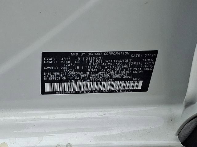 - Radio: Subaru 11.6" Multimedia Plus System -inc: AM/FM stereo, HD Radio, multi-touch gesture high resolution display screen, voice activated controls, Bluetooth® audio streaming and hands-free phone connectivity, Bluetooth® hands-free SMS text messaging connectivity, iPod control capability, smartphone integration: wired and wireless Android Auto w/full screen view and wireless Apple CarPlay w/full screen view, USB and Over The Air (OTA) audio system update, steering wheel audio system and Bluetooth® control switches, 6 speakers (2 dash panel tweeter, 2 front door and 2 rear door), illuminated 3.5mm auxiliary input jack, illuminated front USB A and C input/charge ports, connected services operation indicator, SOS emergency assistance: red SOS button and enhanced roadside assistance: blue i-button