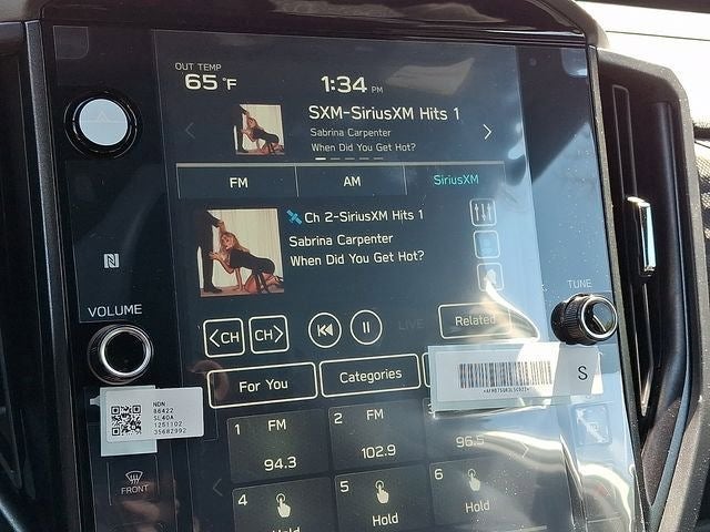 - Radio: Subaru 11.6" Multimedia Navigation System -inc: valet mode, integrated center information display, AM/FM stereo HD Radio, multi-touch gesture high resolution display screen, voice activated controls, voice activated navigation, Bluetooth® audio streaming and hands-free phone connectivity w/SMS text messaging (refer to Subaru.com for cellphone compatibility), TomTom navigation software w/what3words, iPod control capability, smartphone integration: Android Auto and Apple CarPlay w/full screen view and wireless connection, SiriusXM satellite radio w/360L (free 4-month trial subscription included), USB and Over The Air (OTA) audio system update, USB and Map Over The Air (MOTA) TomTom navigation system update (3 years free map updates), steering wheel controls, 6 speakers, 3.5mm auxiliary input jack and roof mounted audio, satellite antenna and SiriusXM Travel Link (4 months free trial included/subscription required after)