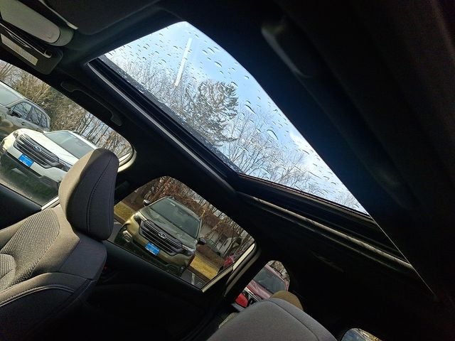 This Forester Premium is nicely equipped with Power Rear Gate and Blind Spot Detection with Rear Cross Traffic Alert (Automatic Emergency Steering, Blind-Spot Detection (BSD)/RCTA System, Emergency Lane Keep Assist, and Power Rear Gate), 4-Wheel Disc Brakes, 6 Speakers, ABS brakes, Air Conditioning, All-Weather Floor Liners, Alloy wheels, AM/FM radio: SiriusXM with 360L, Anti-whiplash front head restraints, Auto High-beam Headlights, Auto-Dimming Mirror with Compass and HomeLink, Automatic temperature control, Brake assist, Bumpers: body-color, Cargo Tray, Driver door bin, Driver vanity mirror, Dual front impact airbags, Dual front side impact airbags, Electronic Stability Control, Emergency communication system: MySubaru Companion (5-years free), Exterior Parking Camera Rear, Four wheel independent suspension, Front anti-roll bar, Front Bucket Seats, Front Center Armrest, Front dual zone A/C, Front fog lights, Front reading lights, Fully automatic headlights, Heated door mirrors, Heated Front Bucket Seats, Heated front seats, Illuminated entry, Knee airbag, Leather steering wheel, Low tire pressure warning, Occupant sensing airbag, Outside temperature display, Overhead airbag, Overhead console, Panic alarm, Passenger door bin, Passenger vanity mirror, Power door mirrors, Power driver seat, Power moonroof: Panoramic, Power steering, Power windows, Premium Textured Cloth Upholstery, Radio data system, Radio: Subaru 11.6 Multimedia Plus System, Rear anti-roll bar, Rear Bumper Cover, Rear seat center armrest, Rear Seatback Protector, Rear window defroster, Rear window wiper, Remote keyless entry, Security system, Speed control, Speed-sensing steering, Split folding rear seat, Spoiler, Steering wheel mounted audio controls, Tachometer, Telescoping steering wheel, Tilt steering wheel, Traction control, Trip computer, Variably intermittent wipers, and Wheels: 17 x 7.0 J Dark Metallic Aluminum-Alloy.