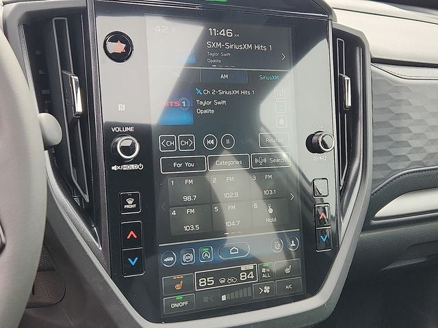 - Radio: Subaru 11.6" Multimedia Plus System -inc: valet mode, integrated center information display, AM/FM stereo HD Radio, multi-touch gesture high resolution display screen, voice activated controls, Bluetooth® audio streaming and hands-free phone connectivity w/SMS text messaging (refer to Subaru.com for cellphone compatibility), iPod control capability, smartphone integration: Android Auto and Apple CarPlay w/full screen view and wireless connection, SiriusXM satellite radio w/360L (free 4-month trial subscription included), USB and Over The Air (OTA) audio system update, steering wheel controls, 6 speakers, 3.5mm auxiliary input jack and roof mounted audio and satellite antenna
