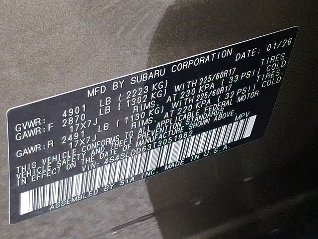 - Wheels: 17" x 7.0 J Dark Metallic Aluminum-Alloy -inc: machine finish and black wheel center cap w/Subaru 6 star logo