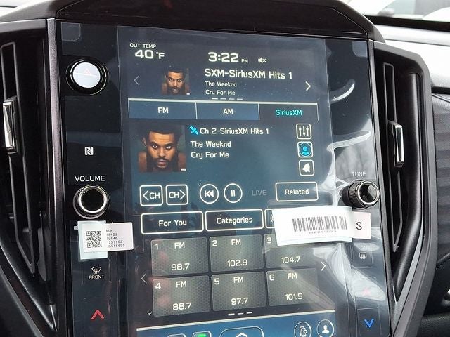 - Radio: Subaru 11.6" Multimedia Plus System -inc: valet mode, integrated center information display, AM/FM stereo HD Radio, multi-touch gesture high resolution display screen, voice activated controls, Bluetooth® audio streaming and hands-free phone connectivity w/SMS text messaging (refer to Subaru.com for cellphone compatibility), iPod control capability, smartphone integration: Android Auto and Apple CarPlay w/full screen view and wireless connection, SiriusXM satellite radio w/360L (free 4-month trial subscription included), USB and Over The Air (OTA) audio system update, steering wheel controls, 6 speakers, 3.5mm auxiliary input jack and roof mounted audio and satellite antenna