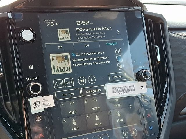 This Forester Touring is nicely equipped with Standard Model, 11 Speakers, 4-Wheel Disc Brakes, ABS brakes, Air Conditioning, All-Weather Floor Liners, Alloy wheels, AM/FM radio: SiriusXM with 360L, Anti-whiplash front head restraints, Auto High-beam Headlights, Automatic temperature control, Brake assist, Bumpers: body-color, Cargo Tray, Driver door bin, Driver vanity mirror, Dual front impact airbags, Dual front side impact airbags, Electronic Stability Control, Emergency communication system: MySubaru Companion (5-years free), Exterior Parking Camera Rear, Four wheel independent suspension, Front anti-roll bar, Front Bucket Seats, Front Center Armrest, Front dual zone A/C, Front fog lights, Front reading lights, Fully automatic headlights, harman/kardon® Speakers, Heads-Up Display, Heated and Ventilated Front Bucket Seats, Heated door mirrors, Heated front seats, Heated rear seats, Heated steering wheel, HVAC memory, Illuminated entry, Knee airbag, Leather Shift Knob, Leather steering wheel, Low tire pressure warning, Memory seat, Navigation System, Occupant sensing airbag, Outside temperature display, Overhead airbag, Overhead console, Panic alarm, Passenger door bin, Passenger vanity mirror, Perforated Leather-Trimmed Upholstery, Power door mirrors, Power driver seat, Power Liftgate, Power moonroof: Panoramic, Power passenger seat, Power steering, Power windows, Radio data system, Radio: Subaru 11.6 Multimedia Navigation System, Rain sensing wipers, Rear anti-roll bar, Rear Bumper Cover, Rear seat center armrest, Rear Seatback Protector, Rear window defroster, Rear window wiper, Remote keyless entry, Security system, Speed control, Speed-sensing steering, Split folding rear seat, Spoiler, Steering wheel mounted audio controls, Tachometer, Telescoping steering wheel, Tilt steering wheel, Traction control, Trip computer, Turn signal indicator mirrors, Variably intermittent wipers, Ventilated front seats, and Wheels: 19 x 7.5 J Dark Gray Aluminum-Alloy.