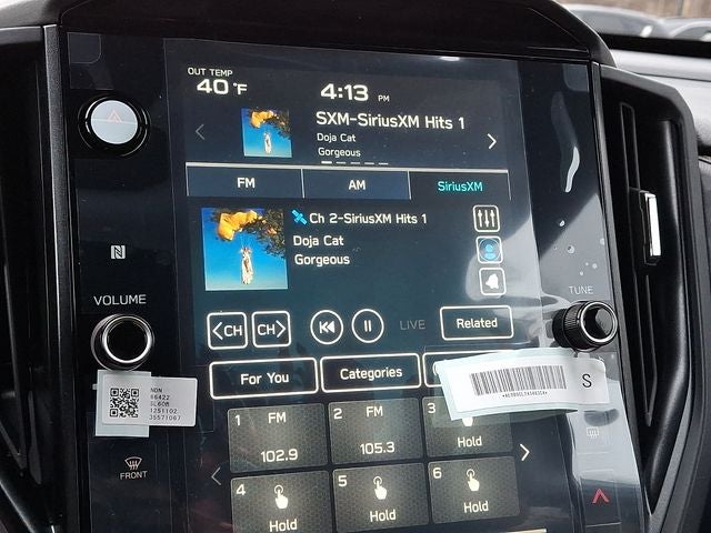 - Radio: Subaru 11.6" Multimedia Plus System -inc: valet mode, integrated center information display, AM/FM stereo HD Radio, multi-touch gesture high resolution display screen, voice activated controls, Bluetooth® audio streaming and hands-free phone connectivity w/SMS text messaging (refer to Subaru.com for cellphone compatibility), iPod control capability, smartphone integration: Android Auto and Apple CarPlay w/full screen view and wireless connection, SiriusXM satellite radio w/360L (free 4-month trial subscription included), USB and Over The Air (OTA) audio system update, steering wheel controls, 6 speakers, 3.5mm auxiliary input jack and roof mounted audio and satellite antenna