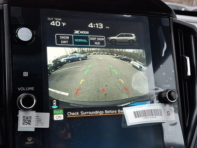 This Forester Wilderness is nicely equipped with Harman/Kardon Speaker System and Power Rear Gate (Power Rear Gate and Radio: Subaru 11.6 Multimedia Navigation System), 4-Wheel Disc Brakes, 6 Speakers, ABS brakes, Air Conditioning, Alloy wheels, AM/FM radio: SiriusXM with 360L, Anti-whiplash front head restraints, Auto High-beam Headlights, Auto-Dimming Mirror with Compass and HomeLink, Automatic temperature control, Brake assist, Bumpers: body-color, Driver door bin, Driver vanity mirror, Dual front impact airbags, Dual front side impact airbags, Electronic Stability Control, Emergency communication system: MySubaru Companion (5-years free), Exterior Parking Camera Rear, Four wheel independent suspension, Front anti-roll bar, Front Bucket Seats, Front Center Armrest, Front dual zone A/C, Front fog lights, Front reading lights, Fully automatic headlights, Heated door mirrors, Heated Front Bucket Seats, Heated front seats, Illuminated entry, Knee airbag, Low tire pressure warning, Occupant sensing airbag, Outside temperature display, Overhead airbag, Overhead console, Panic alarm, Passenger door bin, Passenger vanity mirror, Power door mirrors, Power driver seat, Power moonroof: Panoramic, Power steering, Power windows, Radio data system, Radio: Subaru 11.6 Multimedia Plus System, Rain sensing wipers, Rear anti-roll bar, Rear seat center armrest, Rear window defroster, Rear window wiper, Remote keyless entry, Security system, Speed control, Speed-sensing steering, Split folding rear seat, Spoiler, Steering wheel mounted audio controls, Tachometer, Telescoping steering wheel, Textured StarTex Upholstery, Tilt steering wheel, Traction control, Trip computer, Turn signal indicator mirrors, Variably intermittent wipers, and Wheels: 17 x 7.0 J Matte Black Finish Aluminum-Alloy.