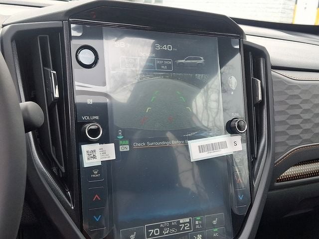 This Forester Wilderness is nicely equipped with 4-Wheel Disc Brakes, 6 Speakers, ABS brakes, Air Conditioning, Alloy wheels, AM/FM radio: SiriusXM with 360L, Anti-whiplash front head restraints, Auto High-beam Headlights, Automatic temperature control, Brake assist, Bumpers: body-color, Driver door bin, Driver vanity mirror, Dual front impact airbags, Dual front side impact airbags, Electronic Stability Control, Emergency communication system: MySubaru Companion (5-years free), Exterior Parking Camera Rear, Four wheel independent suspension, Front anti-roll bar, Front Bucket Seats, Front Center Armrest, Front dual zone A/C, Front fog lights, Front reading lights, Fully automatic headlights, Heated door mirrors, Heated Front Bucket Seats, Heated front seats, Illuminated entry, Knee airbag, Low tire pressure warning, Occupant sensing airbag, Outside temperature display, Overhead airbag, Overhead console, Panic alarm, Passenger door bin, Passenger vanity mirror, Power door mirrors, Power driver seat, Power moonroof: Panoramic, Power steering, Power windows, Radio data system, Radio: Subaru 11.6 Multimedia Plus System, Rain sensing wipers, Rear anti-roll bar, Rear seat center armrest, Rear window defroster, Rear window wiper, Remote keyless entry, Security system, Speed control, Speed-sensing steering, Split folding rear seat, Spoiler, Steering wheel mounted audio controls, Tachometer, Telescoping steering wheel, Textured StarTex Upholstery, Tilt steering wheel, Traction control, Trip computer, Turn signal indicator mirrors, Variably intermittent wipers, and Wheels: 17 x 7.0 J Matte Black Finish Aluminum-Alloy.