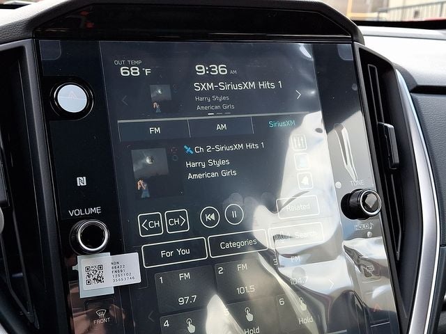 - Radio: Subaru 11.6" Multimedia Plus System -inc: valet mode, AM/FM stereo, HD Radio, multi-touch gesture high resolution display screen, voice activated controls, Bluetooth® audio streaming and hands-free phone connectivity, Bluetooth® hands-free SMS text messaging connectivity, iPod control capability, smartphone integration: wired and wireless Android Auto w/full screen view, wireless Apple CarPlay w/full screen view and wireless connection, USB and Over The Air (OTA) audio system update, audio system and Bluetooth® steering wheel control switches, 6 speakers (2 dash panel tweeter, 2 front door, 2 rear door), illuminated 3.5mm auxiliary input jack, illuminated USB A and C input charge ports, roof mounted satellite and connected services, roof mounted black antenna, connected services operation indicator, SOS emergency assistance (red button) and ehanced roadside assistance (blue i-button)