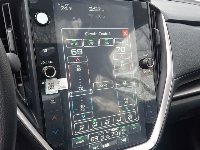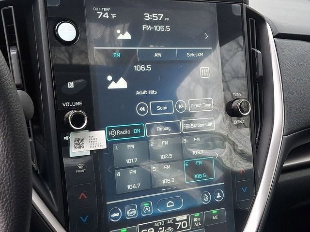 - Radio: Subaru 11.6" Multimedia Plus System -inc: valet mode, AM/FM stereo, HD Radio, multi-touch gesture high resolution display screen, voice activated controls, Bluetooth® audio streaming and hands-free phone connectivity, Bluetooth® hands-free SMS text messaging connectivity, iPod control capability, smartphone integration: wired and wireless Android Auto w/full screen view, wireless Apple CarPlay w/full screen view and wireless connection, USB and Over The Air (OTA) audio system update, audio system and Bluetooth® steering wheel control switches, 6 speakers (2 dash panel tweeter, 2 front door, 2 rear door), illuminated 3.5mm auxiliary input jack, illuminated USB A and C input charge ports, roof mounted satellite and connected services, roof mounted black antenna, connected services operation indicator, SOS emergency assistance (red button) and ehanced roadside assistance (blue i-button)