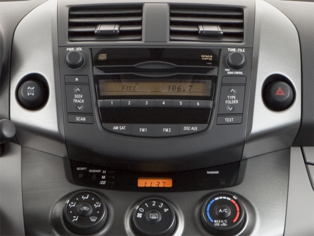 This RAV4 Limited is nicely equipped with 3.5L V6 DOHC Dual VVT-i 24V, 4WD, Ash Leather, 17 x 7.0J 6 Spoke Aluminum Wheels, 3.08 Axle Ratio, 4-Wheel Disc Brakes, 6 Speakers, ABS brakes, Air Conditioning, Alloy wheels, AM/FM 6-Disc CD Changer, AM/FM radio: XM, Anti-whiplash front head restraints, Automatic temperature control, Brake assist, Bumpers: body-color, CD player, Driver door bin, Driver vanity mirror, Dual front impact airbags, Dual front side impact airbags, Electronic Stability Control, Fabric Seat Trim, Four wheel independent suspension, Front anti-roll bar, Front Bucket Seats, Front Center Armrest w/Storage, Front dual zone A/C, Front fog lights, Front reading lights, Fully automatic headlights, Heated door mirrors, Illuminated entry, Leather Shift Knob, Leather steering wheel, Low tire pressure warning, Occupant sensing airbag, Outside temperature display, Overhead airbag, Overhead console, Panic alarm, Passenger door bin, Passenger vanity mirror, Power door mirrors, Power steering, Power windows, Rear anti-roll bar, Rear seat center armrest, Rear window defroster, Rear window wiper, Remote keyless entry, Roof rack, Speed control, Speed-sensing steering, Split folding rear seat, Spoiler, Steering wheel mounted audio controls, Tachometer, Telescoping steering wheel, Tilt steering wheel, Traction control, Turn signal indicator mirrors, and Variably intermittent wipers.
