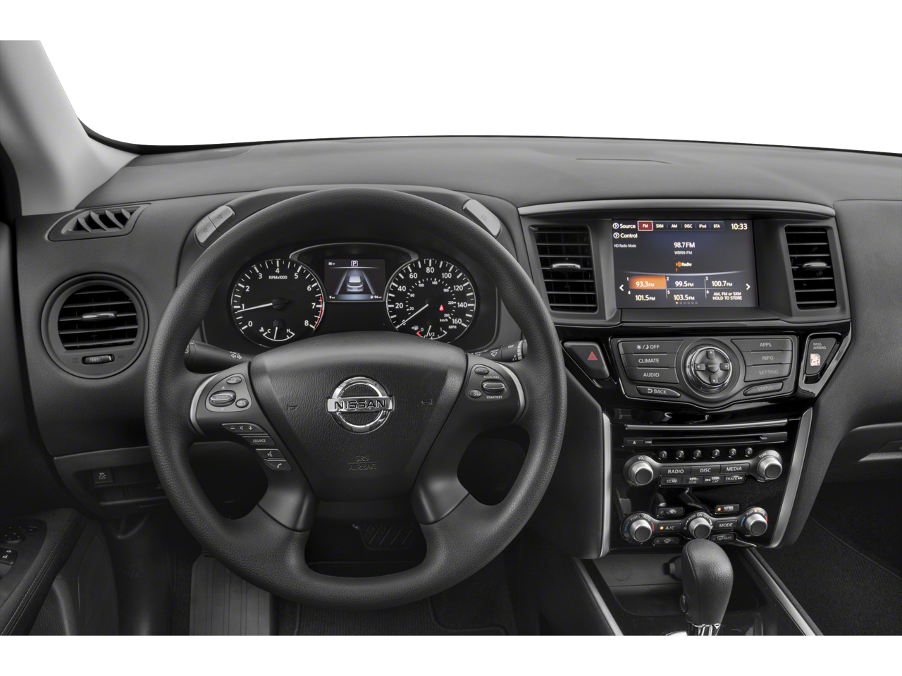 This Pathfinder S is nicely equipped with 4WD, 3rd row seats: bench, 4-Wheel Disc Brakes, 5.25 Axle Ratio, 6 Speakers, ABS brakes, Air Conditioning, Alloy wheels, AM/FM radio: SiriusXM, Automatic temperature control, Black Mold-in-Color Splash Guards, Brake assist, Bumpers: body-color, Carpeted Floor Mats (4-pc Set), CD player, Cloth Seating Surfaces, Cross Bars, Delay-off headlights, Driver door bin, Driver vanity mirror, Dual front impact airbags, Dual front side impact airbags, Electronic Stability Control, Four wheel independent suspension, Front anti-roll bar, Front Bucket Seats, Front Center Armrest, Front dual zone A/C, Front reading lights, Illuminated entry, Low tire pressure warning, Occupant sensing airbag, Outside temperature display, Overhead airbag, Overhead console, Panic alarm, Passenger door bin, Passenger vanity mirror, Power door mirrors, Power steering, Power windows, Radio data system, Radio: AM/FM/CD Audio System w/NissanConnect, Rear air conditioning, Rear anti-roll bar, Rear Bumper Protector, Rear Parking Sensors, Rear reading lights, Rear seat center armrest, Rear window defroster, Rear window wiper, Reclining 3rd row seat, Remote keyless entry, Security system, Speed control, Speed-sensing steering, Split folding rear seat, Spoiler, Steering wheel mounted audio controls, Tachometer, Telescoping steering wheel, Tilt steering wheel, Traction control, Trip computer, Turn signal indicator mirrors, Variably intermittent wipers, and Wheels: 18 x 7.5 J Machined Aluminum-Alloy.