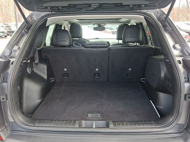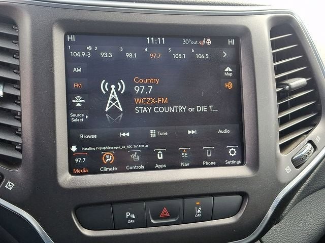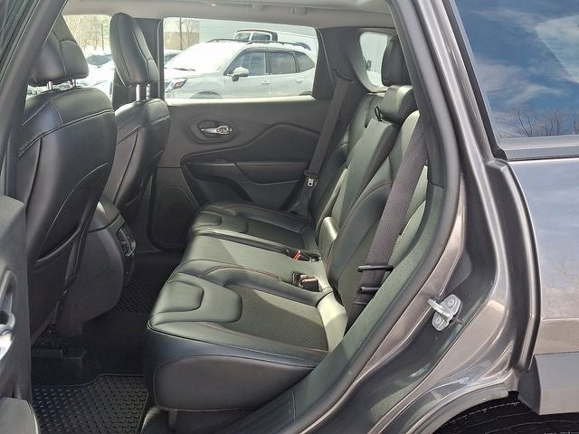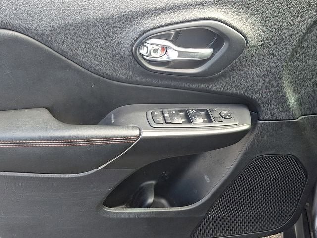 This Cherokee Trailhawk is nicely equipped with Quick Order Package 27E Trailhawk, Sun, Sound & Nav Group (1-Year SiriusXM Guardian Trial, 4G LTE Wi-Fi Hot Spot, 5-Year SiriusXM Traffic Service, 5-Year SiriusXM Travel Link Service, For Details Visit DriveUconnect.com, GPS Navigation, HD Radio, Off-Road Info Pages, Power Front/Fixed Rear Full Sunroof, Premium Alpine Speaker System, Radio: Uconnect 4C Nav w/8.4 Display, SiriusXM Traffic Plus, and SiriusXM Travel Link), 3.517 Axle Ratio, 4-Wheel Disc Brakes, 6 Speakers, ABS brakes, Air Conditioning, Alloy wheels, AM/FM radio: SiriusXM, Anti-whiplash front head restraints, Apple CarPlay/Android Auto, Automatic temperature control, AutoStick Automatic Transmission, Auxiliary Transmission Oil Cooler, Brake assist, Cloth/Premium Vinyl Bucket Seats, Compass, Delay-off headlights, Driver door bin, Driver vanity mirror, Dual front impact airbags, Dual front side impact airbags, Electronic Stability Control, Four wheel independent suspension, Front anti-roll bar, Front Bucket Seats, Front Center Armrest, Front dual zone A/C, Front fog lights, Front License Plate Bracket, Front reading lights, Fully automatic headlights, Heated door mirrors, Heated front seats, Heated steering wheel, Hill Descent Control, Illuminated entry, K-Black Door Trim Panel Appliques, K-Black Interior Accents, Knee airbag, Leather Shift Knob, Low tire pressure warning, Occupant sensing airbag, Off Road Suspension, Outside temperature display, Overhead airbag, Overhead console, Panic alarm, ParkView Rear Back-Up Camera, Passenger door bin, Passenger vanity mirror, Power door mirrors, Power driver seat, Power steering, Power windows, Radio data system, Radio: Uconnect 4 w/8.4 Display, Rain sensing wipers, Rear anti-roll bar, Rear reading lights, Rear seat center armrest, Rear side impact airbag, Rear window defroster, Rear window wiper, Remote keyless entry, Speed control, Speed-sensing steering, Split folding rear seat, Spoiler, Steering wheel mounted audio controls, Tachometer, Telescoping steering wheel, Tilt steering wheel, Traction control, Trip computer, Turn signal indicator mirrors, Variably intermittent wipers, Voltmeter, and Wheels: 17 x 7.5 Painted Diamond Cut AluminuM.