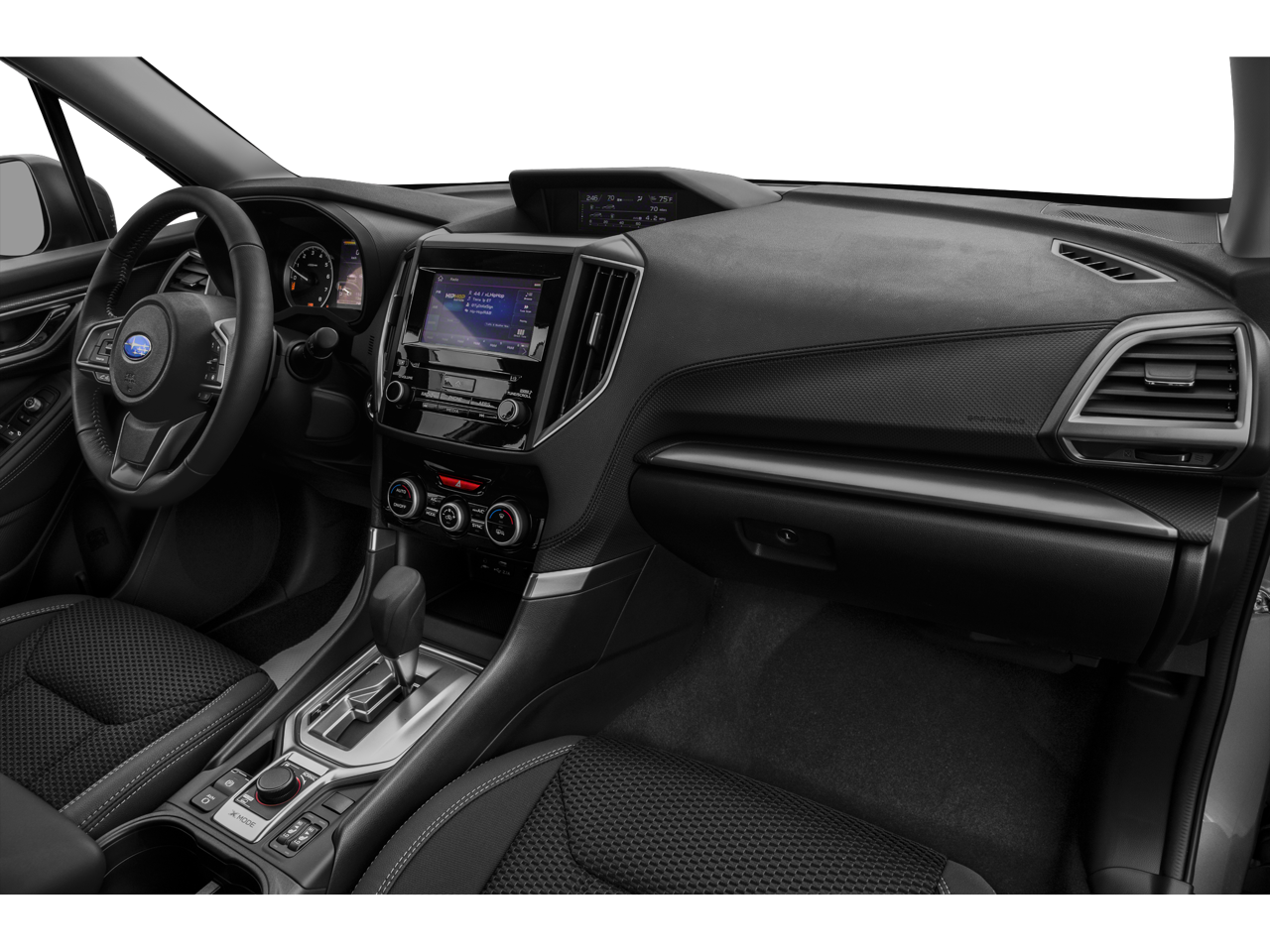 This Forester is nicely equipped with 3.70 Axle Ratio, 4 Speakers, 4-Wheel Disc Brakes, ABS brakes, Air Conditioning, AM/FM radio: SiriusXM, Auto High-beam Headlights, Automatic temperature control, Brake assist, Bumpers: body-color, CD player, Cloth Upholstery, Driver door bin, Driver vanity mirror, Dual front impact airbags, Dual front side impact airbags, Electronic Stability Control, Exterior Parking Camera Rear, Four wheel independent suspension, Front anti-roll bar, Front Bucket Seats, Front Center Armrest, Front reading lights, Fully automatic headlights, Illuminated entry, Knee airbag, Low tire pressure warning, Occupant sensing airbag, Outside temperature display, Overhead airbag, Overhead console, Panic alarm, Passenger door bin, Passenger vanity mirror, Power door mirrors, Power steering, Power windows, Radio data system, Radio: Subaru Starlink 6.5 Multimedia Plus System, Rear anti-roll bar, Rear window defroster, Rear window wiper, Remote keyless entry, Security system, Speed control, Speed-sensing steering, Split folding rear seat, STARLINK/Apple CarPlay/Android Auto, Steering wheel mounted audio controls, Tachometer, Telescoping steering wheel, Tilt steering wheel, Traction control, Trip computer, Variably intermittent wipers, and Wheels: 17 x 7.0J Steel w/Full Wheel Cover.
