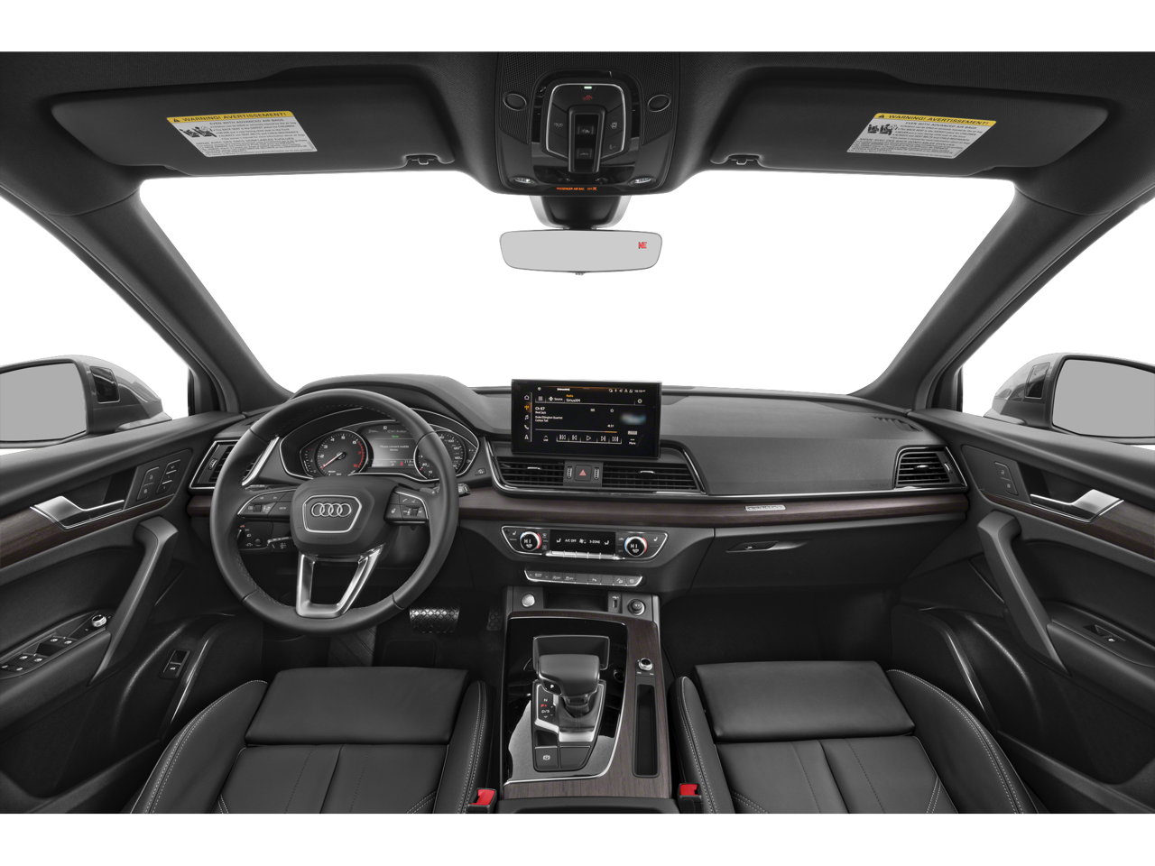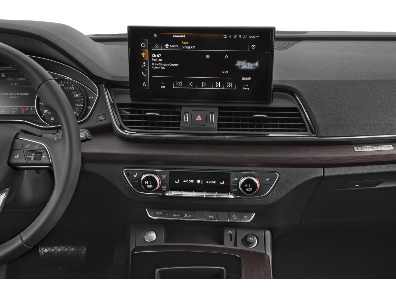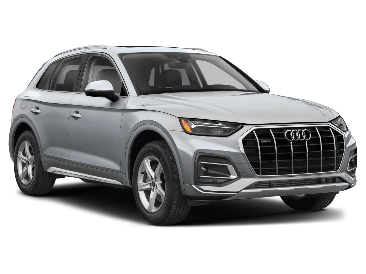 This Q5 45 S line Premium is nicely equipped with Gone Leather, 10 Speakers, 4-Wheel Disc Brakes, 5.302 Axle Ratio, ABS brakes, Air Conditioning, Alloy wheels, AM/FM radio, Auto-dimming Rear-View mirror, Automatic temperature control, Brake assist, Bumpers: body-color, Compass, Delay-off headlights, Driver door bin, Driver vanity mirror, Dual front impact airbags, Dual front side impact airbags, Electronic Stability Control, Emergency communication system: Audi connect CARE, Exterior Parking Camera Rear, Four wheel independent suspension, Front anti-roll bar, Front Bucket Seats, Front Center Armrest, Front dual zone A/C, Front fog lights, Front reading lights, Garage door transmitter: HomeLink, Genuine wood console insert, Genuine wood dashboard insert, Genuine wood door panel insert, Heated 8-Way Power Front Bucket Seats, Heated door mirrors, Heated front seats, Illuminated entry, Leather Seating Surfaces, Leather Shift Knob, Low tire pressure warning, Occupant sensing airbag, Outside temperature display, Overhead airbag, Overhead console, Panic alarm, Passenger door bin, Passenger vanity mirror, Power door mirrors, Power driver seat, Power Liftgate, Power passenger seat, Power steering, Power windows, Radio data system, Radio: Audi Sound System, Rain sensing wipers, Rear air conditioning, Rear anti-roll bar, Rear fog lights, Rear reading lights, Rear seat center armrest, Rear window defroster, Rear window wiper, Remote keyless entry, Roof rack, Security system, Speed control, Speed-sensing steering, Speed-Sensitive Wipers, Split folding rear seat, Spoiler, Steering wheel mounted audio controls, Tachometer, Telescoping steering wheel, Tilt steering wheel, Traction control, Trip computer, Turn signal indicator mirrors, Variably intermittent wipers, and Wheels: 18 5-Arm-Turbine Design.