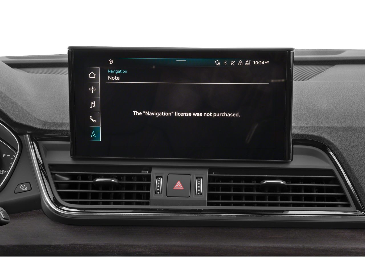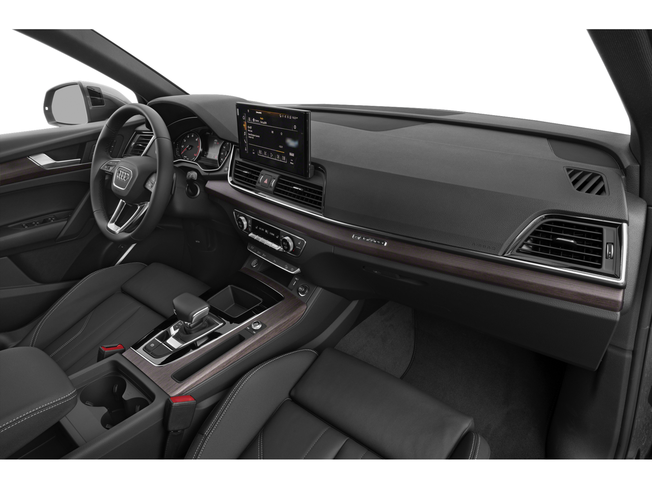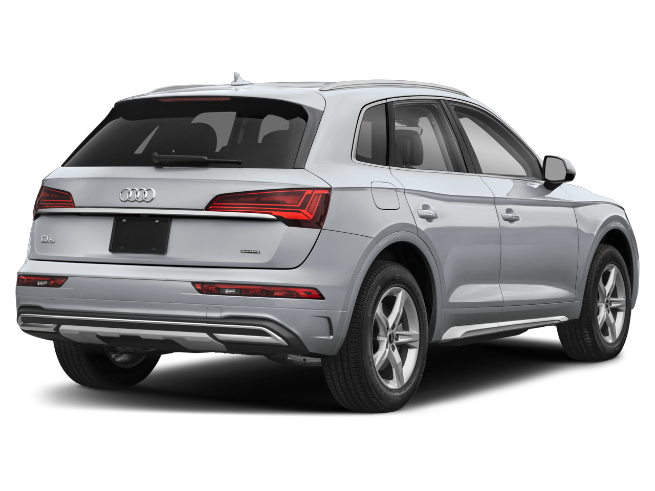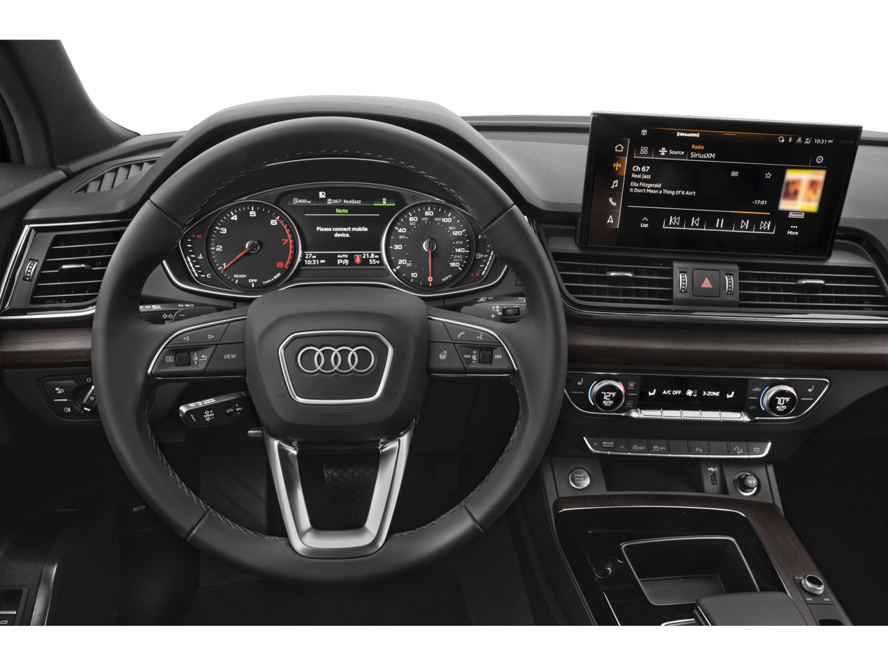 This Q5 45 S line Premium is nicely equipped with Gone Leather, 10 Speakers, 4-Wheel Disc Brakes, 5.302 Axle Ratio, ABS brakes, Air Conditioning, Alloy wheels, AM/FM radio, Auto-dimming Rear-View mirror, Automatic temperature control, Brake assist, Bumpers: body-color, Compass, Delay-off headlights, Driver door bin, Driver vanity mirror, Dual front impact airbags, Dual front side impact airbags, Electronic Stability Control, Emergency communication system: Audi connect CARE, Exterior Parking Camera Rear, Four wheel independent suspension, Front anti-roll bar, Front Bucket Seats, Front Center Armrest, Front dual zone A/C, Front fog lights, Front reading lights, Garage door transmitter: HomeLink, Genuine wood console insert, Genuine wood dashboard insert, Genuine wood door panel insert, Heated 8-Way Power Front Bucket Seats, Heated door mirrors, Heated front seats, Illuminated entry, Leather Seating Surfaces, Leather Shift Knob, Low tire pressure warning, Occupant sensing airbag, Outside temperature display, Overhead airbag, Overhead console, Panic alarm, Passenger door bin, Passenger vanity mirror, Power door mirrors, Power driver seat, Power Liftgate, Power passenger seat, Power steering, Power windows, Radio data system, Radio: Audi Sound System, Rain sensing wipers, Rear air conditioning, Rear anti-roll bar, Rear fog lights, Rear reading lights, Rear seat center armrest, Rear window defroster, Rear window wiper, Remote keyless entry, Roof rack, Security system, Speed control, Speed-sensing steering, Speed-Sensitive Wipers, Split folding rear seat, Spoiler, Steering wheel mounted audio controls, Tachometer, Telescoping steering wheel, Tilt steering wheel, Traction control, Trip computer, Turn signal indicator mirrors, Variably intermittent wipers, and Wheels: 18 5-Arm-Turbine Design.