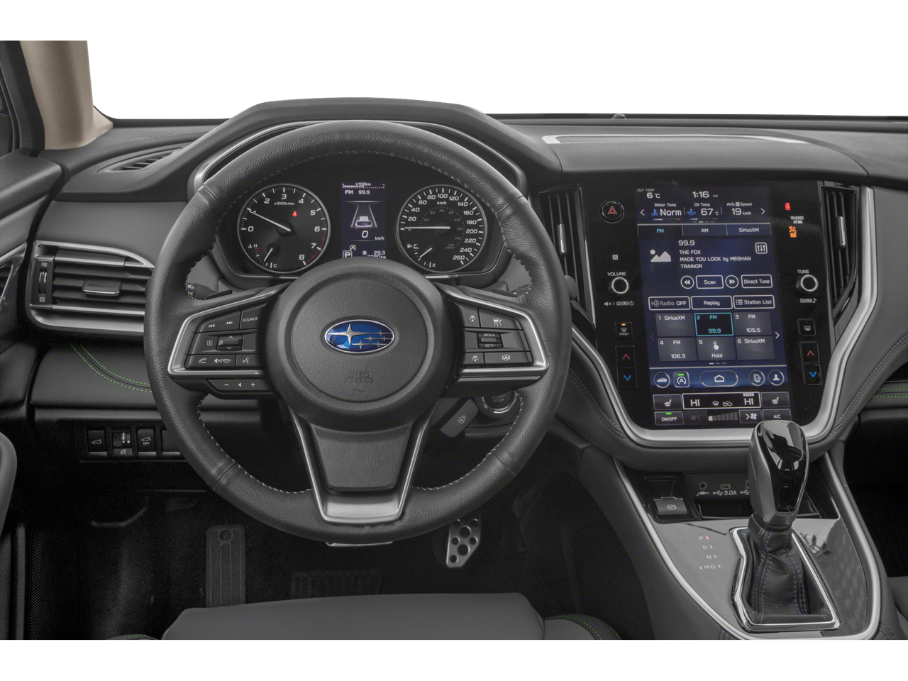 This Outback Onyx Edition is nicely equipped with Power Moonroof & Navigation & RAB (Power Moonroof, Radio: Subaru STARLINK 11.6 Multimedia Nav System, and Reverse Automatic Braking (RAB) System), 3.90 Axle Ratio, 4-Wheel Disc Brakes, 6 Speakers, ABS brakes, Air Conditioning, All-Weather Floor Liners, Alloy wheels, AM/FM radio: SiriusXM, Auto High-beam Headlights, Auto-Dimming Exterior Mirror w/Approach Light, Auto-dimming Rear-View mirror, Automatic temperature control, Autumn Green Metallic Body Side Molding, Autumn Green Metallic Door Edge Guards, Brake assist, Bumpers: body-color, Compass, Driver door bin, Driver vanity mirror, Dual front impact airbags, Dual front side impact airbags, Electronic Stability Control, Emergency communication system: STARLINK Safety Plus (3-year free trial), Exterior Parking Camera Rear, Four wheel independent suspension, Front anti-roll bar, Front Bucket Seats, Front Center Armrest w/Storage, Front dual zone A/C, Front fog lights, Front reading lights, Fully automatic headlights, Garage door transmitter: HomeLink, Heated door mirrors, Heated Front Bucket Seats, Heated front seats, Illuminated entry, Knee airbag, Leather Shift Knob, Leather steering wheel, Low tire pressure warning, Occupant sensing airbag, Outside temperature display, Overhead airbag, Overhead console, Panic alarm, Passenger door bin, Passenger vanity mirror, Power door mirrors, Power driver seat, Power Liftgate, Power steering, Power windows, Radio: Subaru STARLINK 11.6 Multimedia Plus Sys, Rear anti-roll bar, Rear Bumper Cover, Rear seat center armrest, Rear window defroster, Rear window wiper, Remote keyless entry, Roof rack, Security system, Speed control, Speed-sensing steering, Splash Guards, Split folding rear seat, Spoiler, StarTex-Trimmed Upholstery, Steering wheel mounted audio controls, Steering Wheel Paddle Shift Control Switches, Tachometer, Telescoping steering wheel, Tilt steering wheel, Traction control, Trip computer, Turn signal indicator mirrors, Variably intermittent wipers, Wheels: 18 x 7J Black Aluminum Alloy, and Wireless Charger.