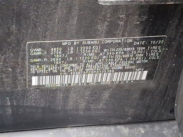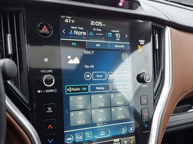 This Outback Touring is nicely equipped with Standard Model, Navigation System, Power Liftgate, Power moonroof, 12 Speakers, 3.90 Axle Ratio, 4-Wheel Disc Brakes, ABS brakes, Air Conditioning, All-Weather Floor Liners, Alloy wheels, AM/FM radio: SiriusXM, Auto High-beam Headlights, Auto-Dimming Exterior Mirror w/Approach Light, Auto-dimming Rear-View mirror, Automatic temperature control, Brake assist, Bumpers: body-color, Cargo Sidewall Protector, Chrome Rear Gate Trim, Compass, Crystal Black Silica Body Side Molding, Crystal Black Silica Door Edge Guards, Door Scuff Protector, Driver door bin, Driver vanity mirror, Dual front impact airbags, Dual front side impact airbags, Electronic Stability Control, Emergency communication system: STARLINK Safety Plus (3-year free trial), Exterior Parking Camera Rear, Four wheel independent suspension, Front anti-roll bar, Front Bucket Seats, Front Center Armrest w/Storage, Front dual zone A/C, Front fog lights, Front reading lights, Fully automatic headlights, Garage door transmitter: HomeLink, harman/kardon® Speakers, Heated & Ventilated Front Bucket Seats, Heated door mirrors, Heated front seats, Heated rear seats, Heated steering wheel, HVAC memory, Illuminated entry, Knee airbag, Leather Shift Knob, Leather steering wheel, Low tire pressure warning, Memory seat, Occupant sensing airbag, Outside temperature display, Overhead airbag, Overhead console, Panic alarm, Passenger door bin, Passenger vanity mirror, Perforated Nappa Leather-Trimmed Upholstery, Power door mirrors, Power driver seat, Power passenger seat, Power steering, Power windows, Radio: Subaru STARLINK 11.6 Multimedia Nav System, Rear anti-roll bar, Rear Bumper Cover, Rear Seat Back Protector, Rear seat center armrest, Rear window defroster, Rear window wiper, Remote CD player, Remote keyless entry, Roof rack, Security system, Speed control, Speed-sensing steering, Splash Guards, Split folding rear seat, Spoiler, Steering wheel mounted audio controls, Steering Wheel Paddle Shift Control Switches, Tachometer, Telescoping steering wheel, Tilt steering wheel, Traction control, Trip computer, Turn signal indicator mirrors, Variably intermittent wipers, Ventilated front seats, Wheels: 18 x 7J Black Aluminum Alloy, and Wireless Charger.