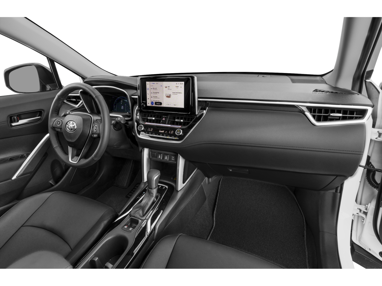 This Corolla Cross XLE is nicely equipped with Convenience Package (PBD Auto & Easy Closer Door and Tilt & Slide Moonroof), 4-Wheel Disc Brakes, 4.014 Axle Ratio, 6 Speakers, ABS brakes, Air Conditioning, Alloy wheels, AM/FM radio: SiriusXM, Auto High-beam Headlights, Auto-dimming Rear-View mirror, Automatic temperature control, Brake assist, Bumpers: body-color, Delay-off headlights, Door Edge Guard (TMS), Driver door bin, Driver vanity mirror, Dual front impact airbags, Dual front side impact airbags, Electronic Stability Control, Emergency communication system: Safety Connect (10-year trial), Exterior Parking Camera Rear, Four wheel independent suspension, Front anti-roll bar, Front Bucket Seats, Front Center Armrest, Front dual zone A/C, Front fog lights, Front reading lights, Fully automatic headlights, Heated door mirrors, Heated Front Bucket Seats, Heated front seats, Illuminated entry, IMB & Alarm Anti-Theft System, Knee airbag, Leather Shift Knob, Leather steering wheel, Low tire pressure warning, Occupant sensing airbag, Outside temperature display, Overhead airbag, Panic alarm, Passenger door bin, Passenger vanity mirror, Power door mirrors, Power driver seat, Power steering, Power windows, Radio data system, Radio: 8 Toyota Multimedia, Radio: Audio Plus w/9 JBL Speakers, Rear anti-roll bar, Rear seat center armrest, Rear side impact airbag, Rear window defroster, Rear window wiper, Remote keyless entry, Roof rack: rails only, Softex Synthetic Leather Seat Trim, Speed control, Split folding rear seat, Spoiler, Steering wheel mounted audio controls, Tachometer, Telescoping steering wheel, Tilt steering wheel, Traction control, Trip computer, Turn signal indicator mirrors, Variably intermittent wipers, and Wheels: 18 Alloy w/Black-Painted Machine-Finish.