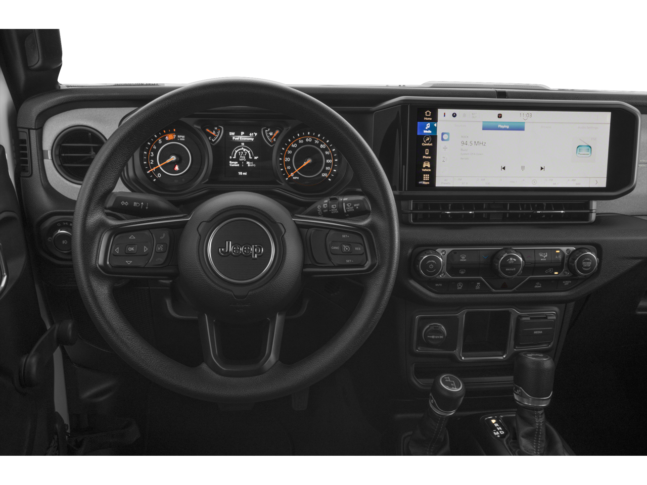 This Wrangler Willys is nicely equipped with Convenience Group (2-Door Passive Entry, Front Door Locks, Air Conditioning w/Auto Temperature Control, Air Filtering, Cluster 7.0 TFT Color Display, Emergency/Assistance Call, Heated Front Seats, Heated Steering Wheel, Remote Start System, and Universal Garage Door Opener), Quick Order Package 24W Willys (240 Amp Alternator, 4-Wheel Drive Swing Gate Decal, 4.10 Rear Axle Ratio, 7 & 4 Pin Wiring Harness, 700 Amp Maintenance Free Battery, 97 MPH Vehicle Max Speed Calibration, Advanced Brake Assist, Automatic Headlamps, Auxiliary Switches, Black Grille, Class II Receiver Hitch, Conventional Differential Front Axle, Corning Gorilla Glass, Dana M210 Wide HD Tube Front Axle, Dana M220 Wide Rear Axle, Daytime Running Lamps LED Accents, Deep Tint Sunscreen Windows, E-Locker Rear Axle, Enhanced Adaptive Cruise Control, Front 1-Touch Down Power Windows, Front LED Fog Lamps, Full Speed FWD Collison Warn Plus, Injection Molded Black Rear Bumper, LED Premium Reflector Headlamps, Mold In Color Bumper w/Gloss Black, Molded in Color Rubicon Highline Flare, MOPAR All-Weather Floor Mats, Off-Road Plus Mode, Power Heated Mirrors, Premium Wrapped Steering Wheel, Remote Keyless Entry, Security Alarm, Speed Sensitive Power Locks, Sun Visors w/Illuminated Vanity Mirrors, Wheels: 17 x 7.5 Painted Black, Willy's Suspension, Willys, and Willys Hood Decal), 110 MPH Vehicle Max Speed Calibration, 4-Wheel Disc Brakes, 8 Speakers, ABS brakes, AM/FM radio: SiriusXM with 360L, Apple CarPlay/Android Auto, Auxiliary Battery, Black 3-Piece Hard Top, Brake assist, Cloth Low-Back Bucket Seats, Compass, Delay-off headlights, Driver door bin, Driver vanity mirror, Dual front impact airbags, Dual front side impact airbags, Electronic Stability Control, Freedom Panel Storage Bag, Front anti-roll bar, Front Bucket Seats, Front Center Armrest w/Storage, Front fog lights, Front reading lights, Integrated roll-over protection, Low tire pressure warning, MOPAR Hardtop Headliner, No Soft Top, Non-Locking Fuel Cap w/o Discriminator, Normal Duty Suspension, Occupant sensing airbag, Outside temperature display, Overhead airbag, ParkView Rear Back-Up Camera, Passenger door bin, Passenger vanity mirror, Power steering, Radio data system, Radio: Uconnect 5 w/12.3 Display, Rear anti-roll bar, Rear reading lights, Rear Window Defroster, Rear Window Wiper/Washer, Speed control, Start-Stop Dual Battery System, Steering wheel mounted audio controls, Tachometer, Telescoping steering wheel, Tilt steering wheel, Traction control, Trip computer, Variably intermittent wipers, and Wheels: 17 x 7.5 Black Steel Styled.