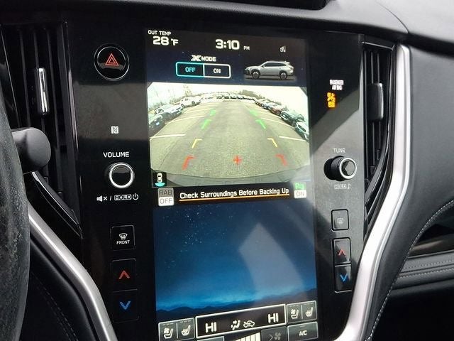 This Outback Touring XT is nicely equipped with Standard Model, Exterior Parking Camera Rear, Navigation system: TomTom Navigation w/what3words, Power Liftgate, Power moonroof, Radio: Subaru STARLINK 11.6 Multimedia Nav System, 12 Speakers, 4-Wheel Disc Brakes, 4.111 Axle Ratio, ABS brakes, Air Conditioning, All-Weather Floor Liners, Alloy wheels, AM/FM radio: SiriusXM, Auto High-beam Headlights, Auto-Dimming Exterior Mirror w/Approach Light, Auto-dimming Rear-View mirror, Automatic temperature control, Brake assist, Bumpers: body-color, Compass, Driver door bin, Driver vanity mirror, Dual front impact airbags, Dual front side impact airbags, Electronic Stability Control, Emergency communication system: STARLINK Safety Plus (3-year free trial), Four wheel independent suspension, Front anti-roll bar, Front Bucket Seats, Front Center Armrest w/Storage, Front dual zone A/C, Front fog lights, Front reading lights, Fully automatic headlights, Garage door transmitter: HomeLink, harman/kardon® Speakers, Heated & Ventilated Front Bucket Seats, Heated door mirrors, Heated front seats, Heated rear seats, Heated steering wheel, HVAC memory, Illuminated entry, Knee airbag, Leather Shift Knob, Leather steering wheel, LED Upgrade, Low tire pressure warning, Memory seat, Occupant sensing airbag, Outside temperature display, Overhead airbag, Overhead console, Panic alarm, Passenger door bin, Passenger vanity mirror, Perforated Nappa Leather-Trimmed Upholstery, Power door mirrors, Power driver seat, Power passenger seat, Power steering, Power windows, Rear anti-roll bar, Rear Bumper Cover, Rear Seat Back Protector, Rear seat center armrest, Rear window defroster, Rear window wiper, Remote CD player, Remote keyless entry, Roof rack, Security system, Speed control, Speed-sensing steering, Splash Guards, Split folding rear seat, Spoiler, Steering wheel mounted audio controls, Tachometer, Telescoping steering wheel, Tilt steering wheel, Traction control, Trip computer, Turn signal indicator mirrors, Variably intermittent wipers, Ventilated front seats, and Wheels: 18 x 7J Black Aluminum-Alloy.