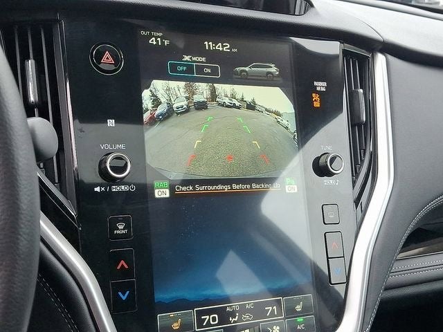 This Outback Limited is nicely equipped with Popular Package #2 (All-Weather Floor Liners, Auto-Dimming Exterior Mirror w/Approach Light, LED Upgrade, Rear Bumper Cover, Rear Seat Back Protector, and Splash Guards), Standard Model, Subaru Certified Pre-Owned Certified, Exterior Parking Camera Rear, Navigation system: TomTom Navigation w/what3words, Radio: Subaru 11.6 Multimedia System w/Navigation, 12 Speakers, 4-Wheel Disc Brakes, ABS brakes, Air Conditioning, Alloy wheels, AM/FM radio: SiriusXM with 360L, Apple CarPlay & Android Auto, Auto High-beam Headlights, Auto-dimming Rear-View mirror, Automatic temperature control, Brake assist, Bumpers: body-color, Compass, Driver door bin, Driver vanity mirror, Dual front impact airbags, Dual front side impact airbags, Electronic Stability Control, Emergency communication system: MySubaru Safety (3-year free trial), Four wheel independent suspension, Front anti-roll bar, Front Bucket Seats, Front Center Armrest w/Storage, Front dual zone A/C, Front fog lights, Front reading lights, Fully automatic headlights, Garage door transmitter: HomeLink, harman/kardon® Speakers, Heated door mirrors, Heated Front Bucket Seats, Heated front seats, Heated rear seats, Heated steering wheel, HVAC memory, Illuminated entry, Knee airbag, Leather Shift Knob, Leather steering wheel, Low tire pressure warning, Memory seat, Occupant sensing airbag, Outside temperature display, Overhead airbag, Overhead console, Panic alarm, Passenger door bin, Passenger vanity mirror, Perforated Leather-Trimmed Upholstery, Power door mirrors, Power driver seat, Power Liftgate, Power moonroof, Power passenger seat, Power steering, Power windows, Rear anti-roll bar, Rear seat center armrest, Rear window defroster, Rear window wiper, Remote keyless entry, Roof rack, Security system, Speed control, Speed-sensing steering, Split folding rear seat, Spoiler, Steering wheel mounted audio controls, Tachometer, Telescoping steering wheel, Tilt steering wheel, Traction control, Trip computer, Turn signal indicator mirrors, Variably intermittent wipers, and Wheels: 18 x 7J Black Aluminum-Alloy.